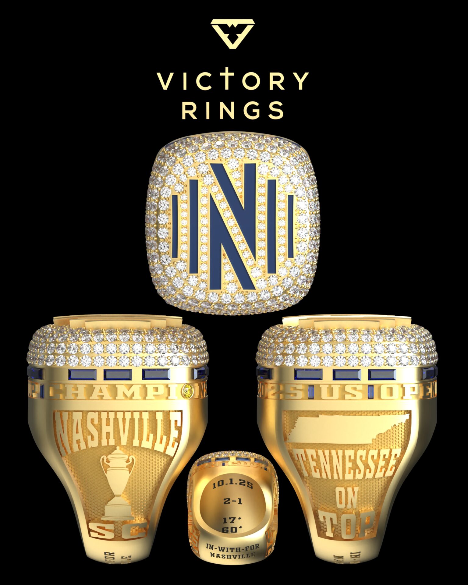 - Nashville SC’s newest title, 2025 U.S. Open Cup Champions, is engraved around the face of the ring. Woven into the inscription are six stones representing the Club’s six core values — ambition, authenticity, community, creativity, inclusivity, and integrity — as well as the six strings of a guitar, a symbol synonymous with Music City.